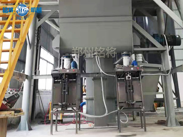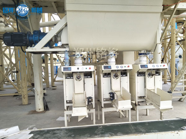 5、裝袋機構:具有獨特新穎的自動壓袋裝置。當干粉砂漿裝到標定重量時,氣缸關閉出料口,自動松袋裝置工作。