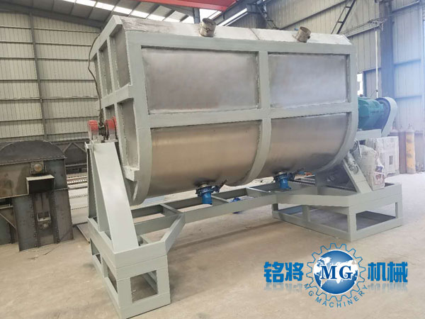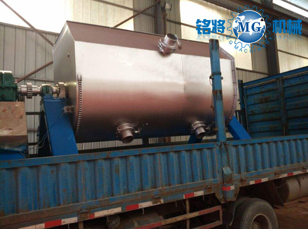 本產(chǎn)品采用U型外觀設(shè)計(jì),內(nèi)部采用雙層螺帶設(shè)計(jì)。即在水平的主軸上裝有兩條或多條輸送能力相同,螺徑不同,螺轉(zhuǎn)方向不同的螺帶。通常是當(dāng)主軸轉(zhuǎn)動(dòng)時(shí),一條螺帶把物料從左至右輸送,另一條螺帶把物料從右至左輸送。因而在機(jī)內(nèi)發(fā)生對(duì)流穿插混合作用,達(dá)到混合均勻的目的。