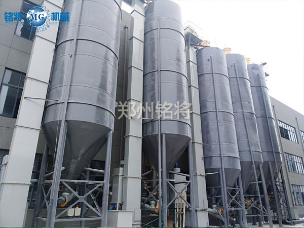 蘇州鴻川建筑材料有限公司全自動干粉砂漿生產(chǎn)線、自動包裝輸送碼垛生產(chǎn)線由鄭州銘將承建。本套生產(chǎn)線與其它生產(chǎn)線不同的是采用了氣體輸送,另外增添了自動輸送和碼垛系統(tǒng)。