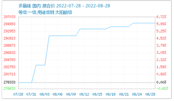 光伏產業(yè)鏈,多晶硅報價從8月初的278333元/噸漲至294993元/噸,大漲16660元。