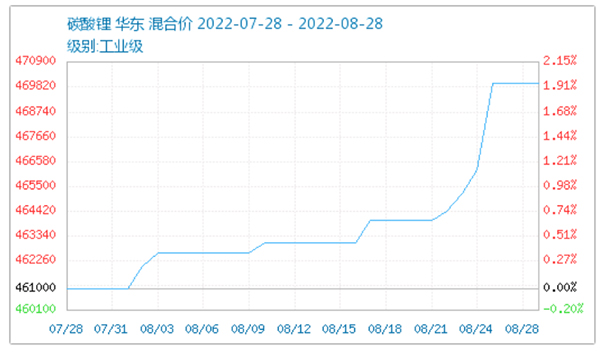 有料網了解到,近日鋰價持續(xù)上漲,企業(yè)現貨資源惜售為主。根據生意社數據,碳酸鋰近期價格持續(xù)上漲,自461000元/噸漲至469820元/噸。