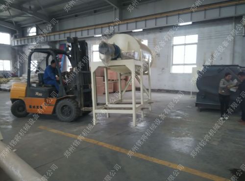 用在全自動干粉砂漿生產(chǎn)線上的雙軸無重力混合機已經(jīng)組裝完畢,只等噴漆了。