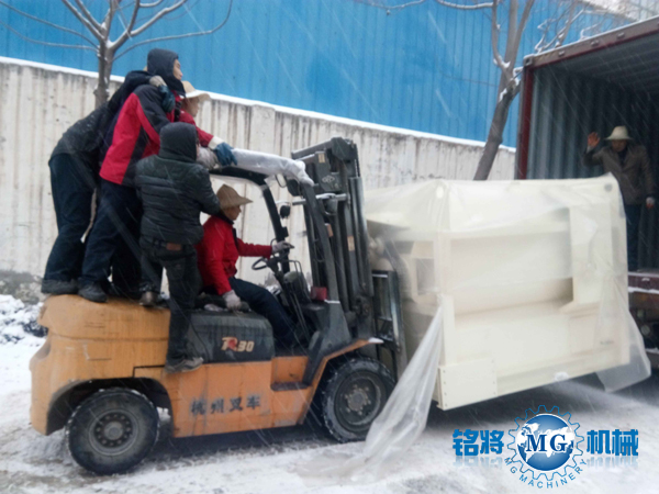 3.2018年1月7-9日,客戶指定發(fā)貨日期,適逢大雪嚴(yán)寒天氣,銘將員工戰(zhàn)天斗地,在冰天雪地中,按時(shí)按量保質(zhì)完成9輛貨柜裝箱任務(wù):